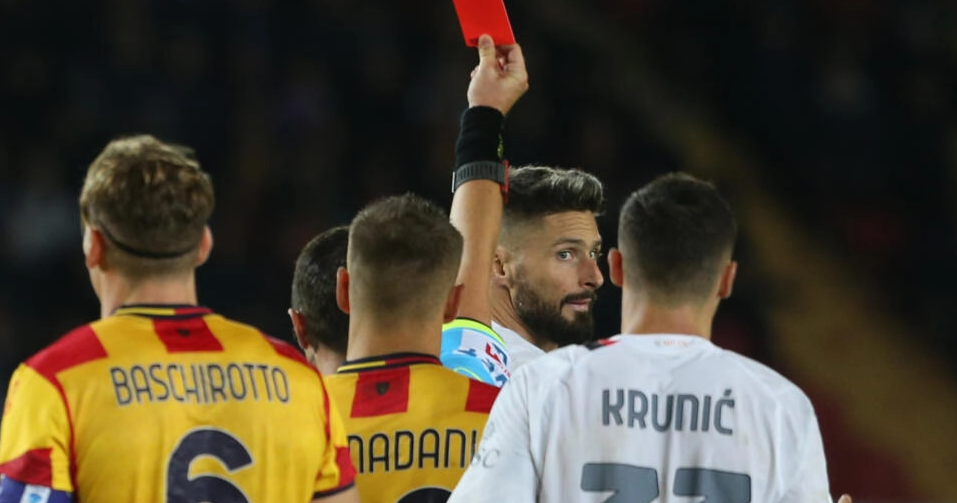 法国前锋吉鲁周六下午在滨海球场补时阶段因对裁判罗萨里奥·阿比索提出“辱骂”而被罚下场。